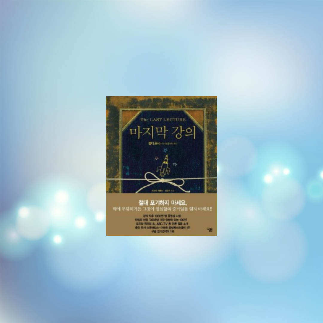 마지막 강의는 카네기 멜론 대학의 컴퓨터 공학 교수인 랜디포스가 쓴 책이다. 이 책은 "진정으로 어린 시절의 꿈을 이루기 "라는 제목으로 강의 내용을 바탕으로 작성된 책이다.